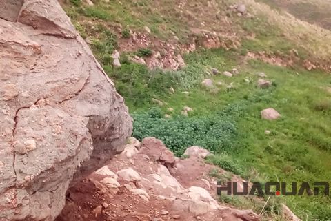 開始的一段路,很寬,也很平坦,偶爾還有車輛和行人路過,很熱情的打個招呼。再加上周圍的田園風光,青山相伴;有時候也會走一段岔路,深入到海邊,聽一下波濤撞擊巖石的聲音,或者撿幾塊鵝卵石隨手丟一下,或者用手機拍上幾張照片,那感覺還是蠻不錯的。隨著時間的推移,路程的深入,小路也變得越來越窄,越來越崎嶇不平,再也難見人煙,甚至由于雜草叢生,原來的小路已被湮沒。但我的心頭仍十分興奮,堅持往前走著,偶爾還哼一首小曲。再到后來,終于到達了那座建有碉堡的山頭的山腳下,由于海山相連,多年的海浪沖刷,形成了一面高達10余米的斷崖(后來,我打聽出它的名字,叫老虎崖,實為島上 險的一處),而小路到了這里是真的隱沒了,竟然蹤跡皆無。抬頭望望,山勢陡峭、怪石嶙峋;低頭看看,懸崖絕壁,浪頭拍打著石崖,發出可怕的聲音。當時,真想扭頭往回趕,可是,當想起那短漫長的回頭路,又使得我不得不把頭扭了回來,心里想,既然人家說能過去,肯定有路可過!仔細地看了看頭頂,發現有一塊巨石,旁邊似乎有人攀登過,也沒有太多的雜早。于是,我緊緊抓住旁邊的一棵小樹,將身子一躍,來到了石頭旁邊。正如我所料,透過巨石,我看到了那邊的“平坦大道”。小心翼翼的扶著巨石,側身走過那窄得只容一個人的縫隙,來到懸崖之上的大道上,緊張的心情立刻松弛下來。站在懸崖之上,我真的看到了別樣的風景。