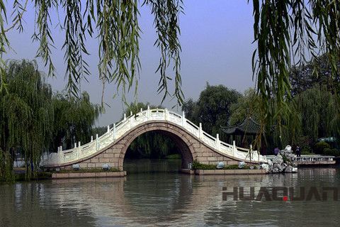 瘦西湖其實是揚州城外一條較寬的河道, 初在清朝康熙年間名為保揚河,嘉靖時稱為保障河(湖),也被稱為炮山河、長春河。面積480多畝,長4.3公里。原是唐羅城、宋大城的護城河遺跡,南起北城河,北抵蜀岡腳下,明清時期,許多富甲天下的鹽業(yè)巨子紛紛在沿河兩岸,不惜重金聘請造園名家擘畫經(jīng)營 ,構(gòu)筑水上園林。乾隆極盛時期沿湖有二十四景:卷石洞天、西園曲水、虹橋覽勝、冶春詩社、長堤春柳、荷浦薰風(fēng)、碧玉交流、四橋煙雨、春臺明月、白塔晴云、三過流淙、蜀崗?fù)碚铡⑷f松疊翠、花嶼雙泉、雙峰云棧、山亭野眺、臨水紅霞、綠稻香來、竹市小樓、平崗艷雪、綠楊城廓、香海慈云、梅嶺春生、水云勝概,譽為“兩堤花柳全依水,一路樓臺直到山”。康熙和乾隆兩位皇帝均六次南巡來此,對這里的景色贊賞有加。