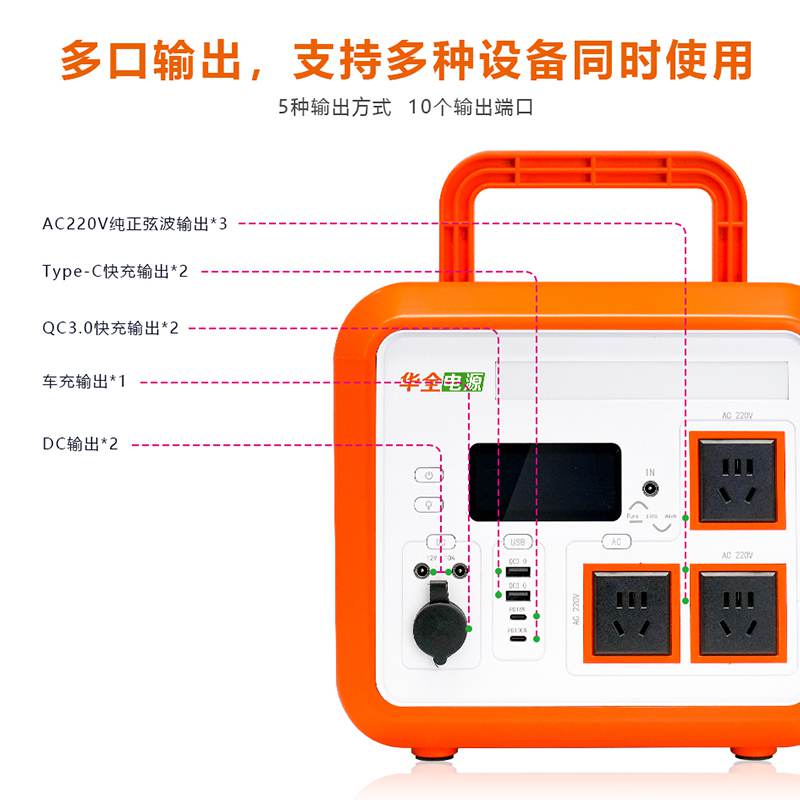 這里要注意的是,HQDY-1500-B戶外電源額定功率為1500W,多個端口同時使用時,總功率不能找過這個數值。