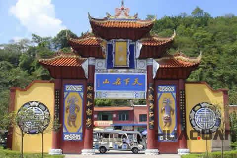 名山雖不高,卻也是古木參天,怪石林立,樓臺(tái)亭榭錯(cuò)落有致;廟宇殿堂巧奪天工…… 為神奇的是天子殿,那陰森森的殿中央,身高6米的天子爺赫然高坐,神目如電,左右朝臣俯首聽命,謙恭有加;座前四大判官或捧生死簿,或握勾魂索,秉公執(zhí)法,懲惡揚(yáng)善。堂下十大陰帥,威風(fēng)凜凜對排肅立,殿兩旁的東西地獄是陰曹地府的行刑場所,上刀山、下火海、甑子蒸、油鍋炸、磨子推、鋸子鋸、車馬裂、狼狗吃等種種酷刑,令人慘不忍睹,毛骨聳然。