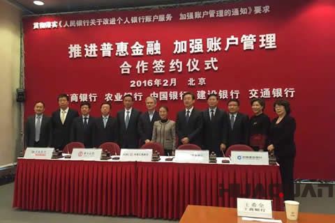 另據證券時報消息,2月25日,工、農、中、建、交五家銀行在北京舉行“加強賬戶管理,推進普惠金融”聯合簽約及新聞發布儀式,中國支付清算協會以及包括郵儲銀行、民生銀行、北京銀行、北京農村商業銀行、網商銀行、微眾銀行等在內的9家商業銀行代表共同見證了當天的簽約活動。